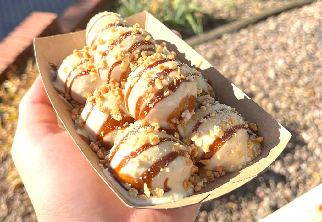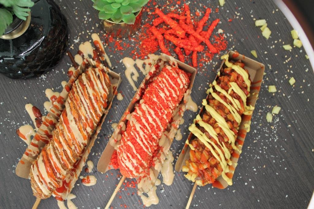 Koreanische Corndogs (verschiedene Varianten: Mozzarella oder Wurst, vegetarisch)