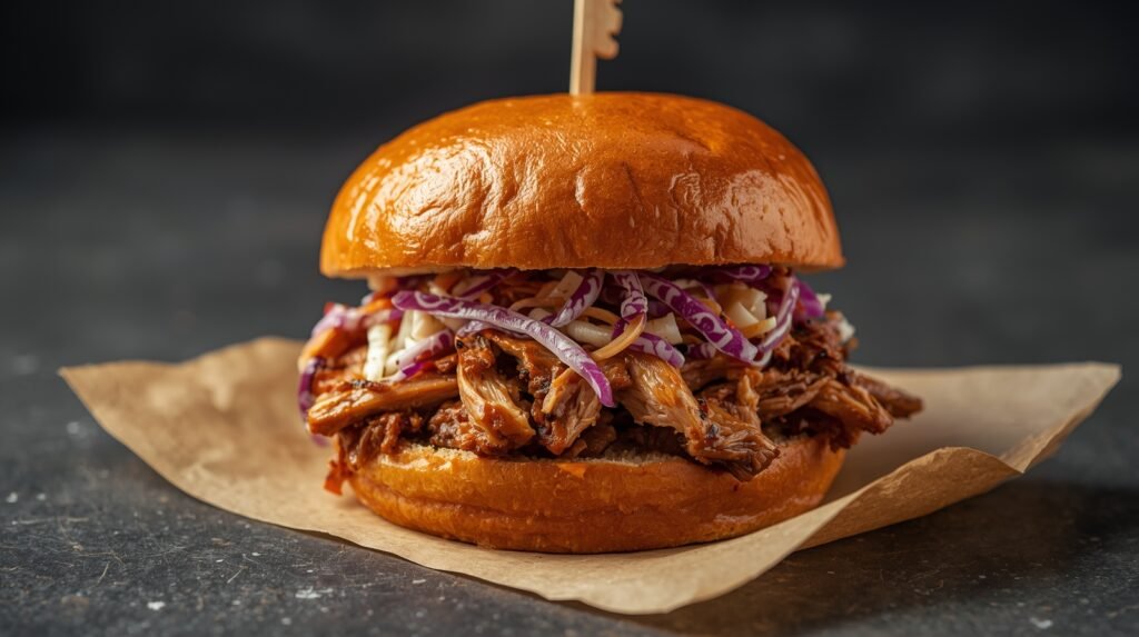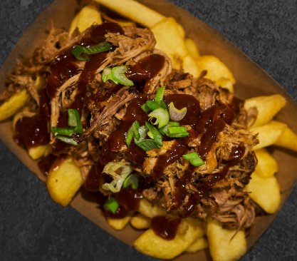 Pulled Burger, Sandwich, Pommes, Currywurst