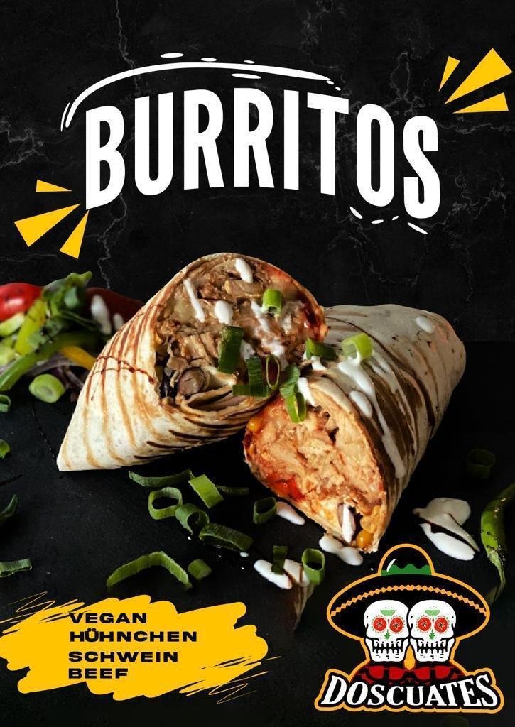 Burrito Quesadilla, Tacos, Nachos, Mexican Teller, mit Fleisch, Hähnchen und vegan